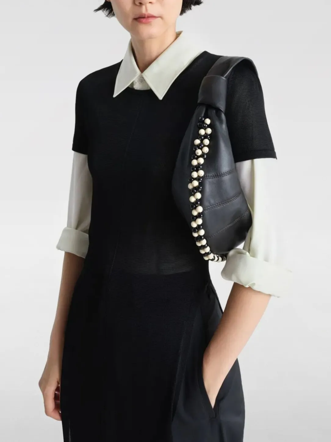 Borsa Curved Self-Portrait in pelle con fiocchi di strass