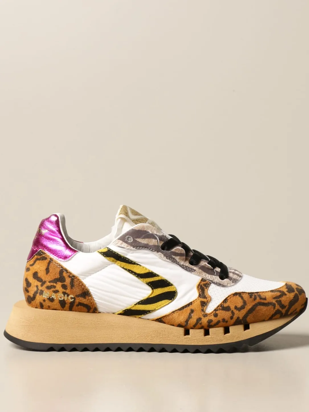 – Tomaia in camoscio animalier e nylon